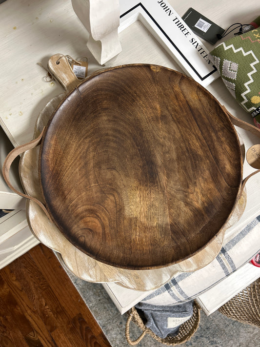 DEMDACO WOOD TRAY W/ LEATHER HANDLES