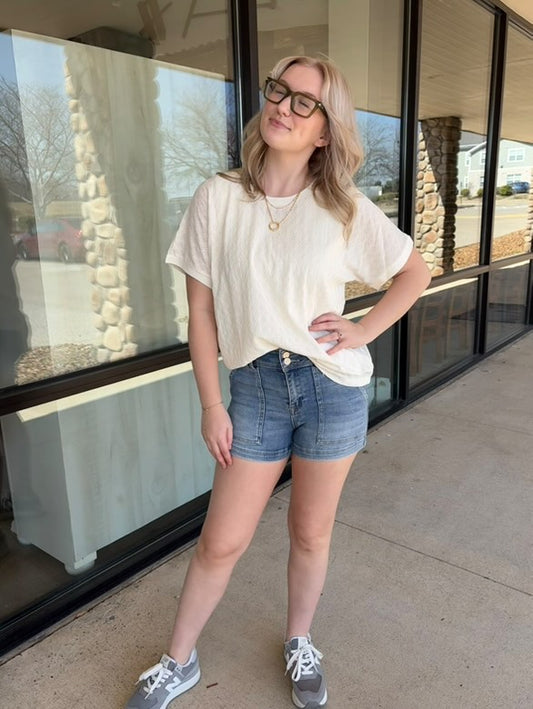 Textured Fabric Crew Neck Top, Ivory