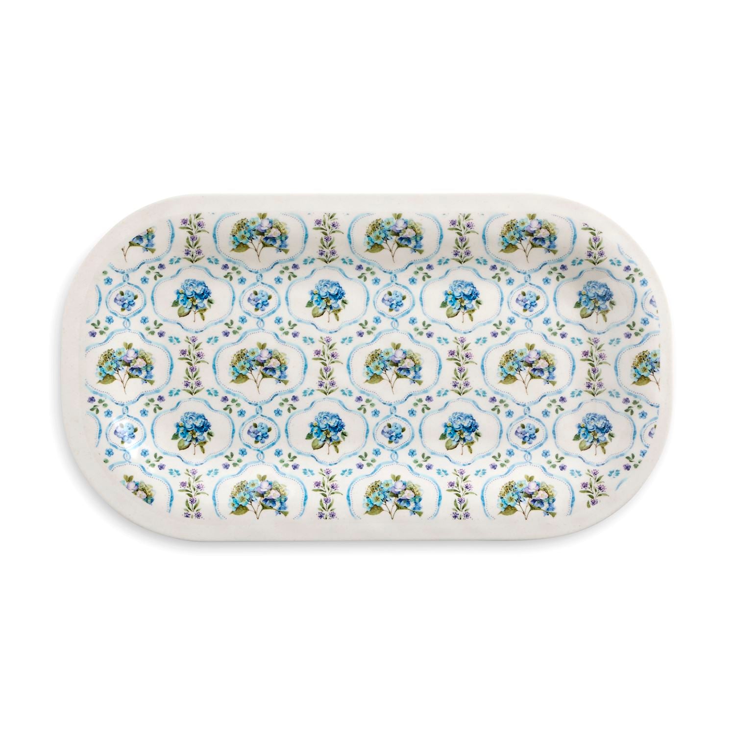 Whether it's a Sunday family dinner or scooping up sweet and salty snacks at the kitchen island, spending time together eating, laughing and eating a little more inspires real moments that become savored memories. This essential collection, including the Hydrangea Medium Melamine Rectangular Platter - 16x9in, pairs fun phrases and tasteful styling with heirloom-quality that make the most casual gatherings feel like a celebration.