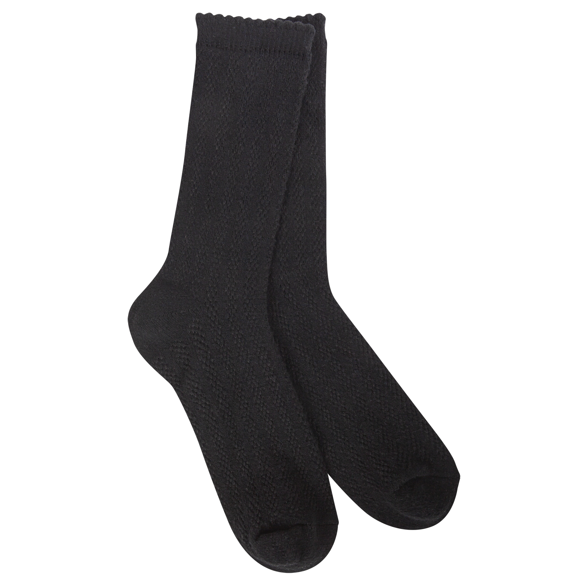 The Pointelle Crew is the perfect choice for those looking for ultimate comfort and support. Made with the world's softest sock material, these black crew socks will provide unparalleled softness and cushioning for your feet. Experience luxury and functionality in one sock.